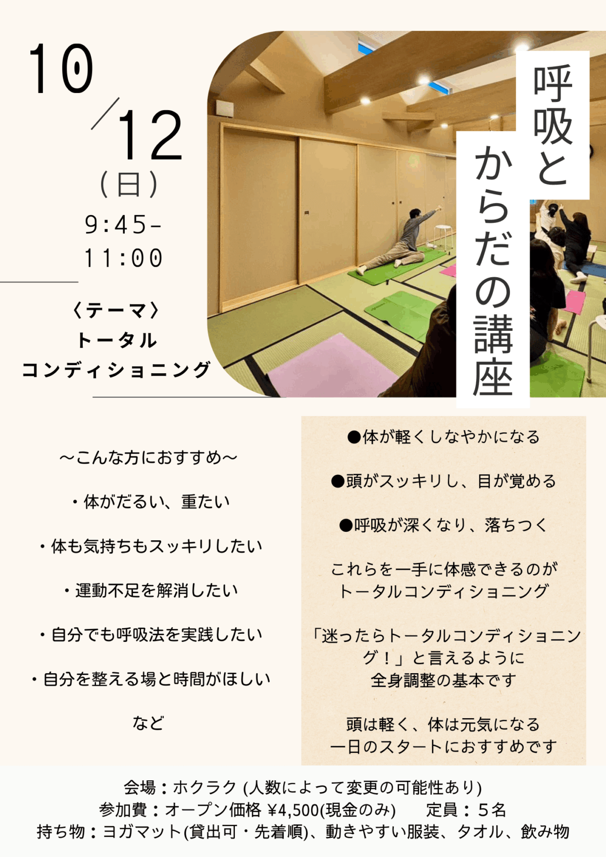 10月の呼吸とからだの講座『トータルコンディショニング』