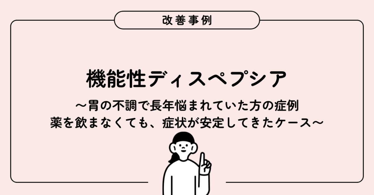 改善事例:機能性ディスペプシア〜胃の不調で長年悩まれていた方の症例/薬を飲まなくても、症状が安定してきたケース〜